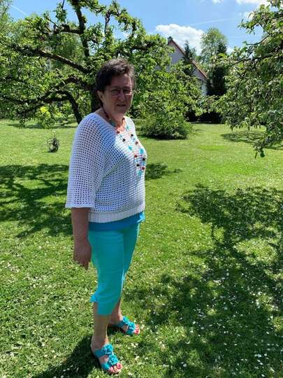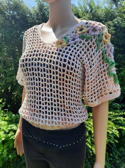 Und wers gern blumig mag, kann das Kleidungsstück auch noch mit eingehäkelten Blumen verzieren