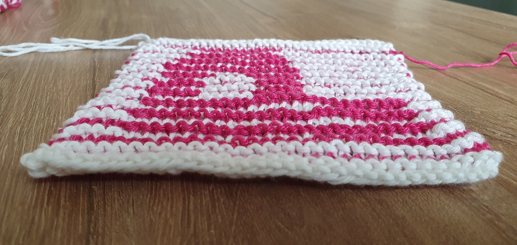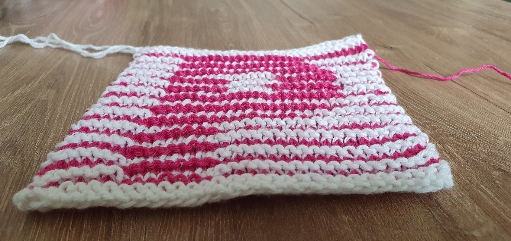 Dabei habe ich 33 Maschen aufgenommen und 23 Hin- und Rückreihen gestrickt.
