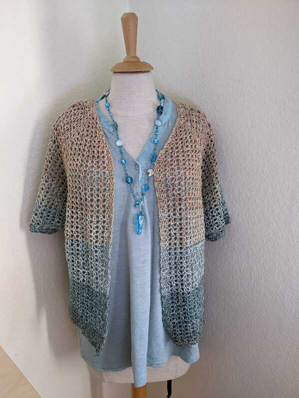 Hier erwirbst du eine Anleitung für eine sehr wandelbare Jacke. Sie kann als Bolero, als Kurz-, Halbarm- oder Langarmjacke gearbeitet werden. Auch die Körperlänge ist frei wählbar.