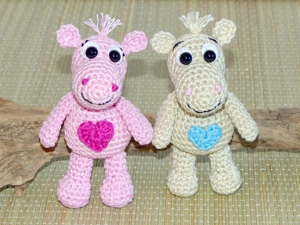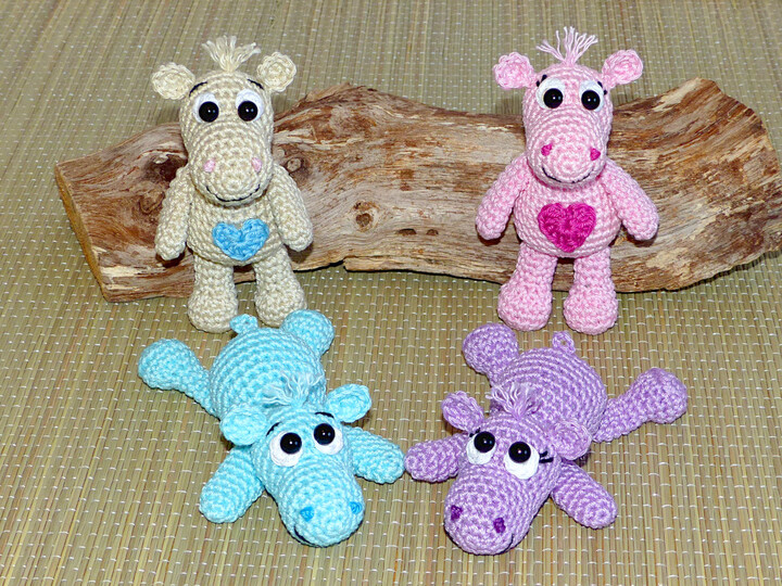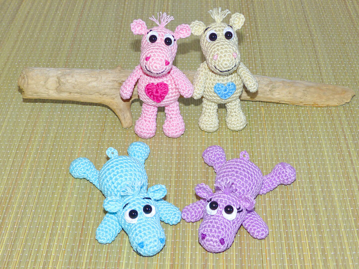Ich beschreibe euch in der Anleitung wie das stehende und das liegende Nilpferd gehäkelt wird.