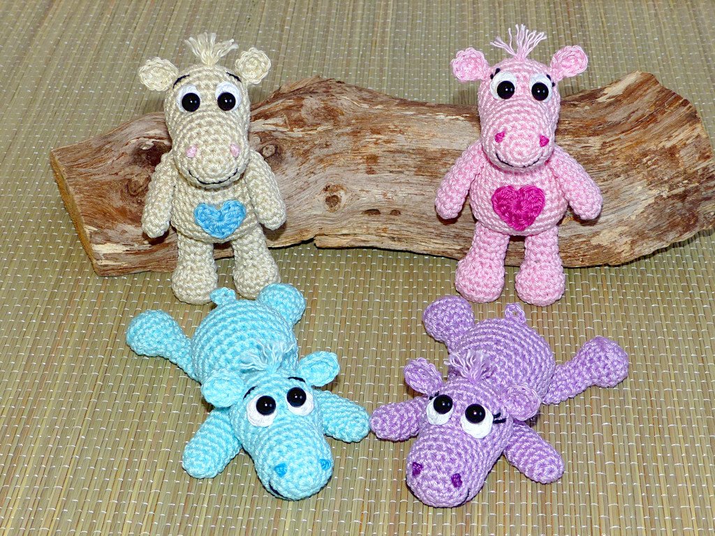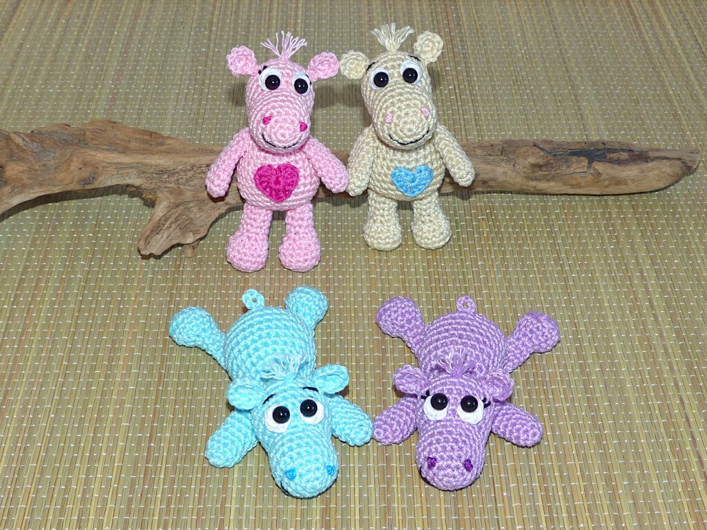 Nachdem ich bereits ein sehr großes Nilpferd in meinem Shop habe, wollte ich nun Mini Nilpferde häkeln :D Und voila hier sind sie. Sie sind perfekt als Schlüsselanhänger oder Taschenbaumler geeignet, aber auch als kleine Spielfiguren oder kleine Kuschelfreunde sind sie bestens zu gebrauchen. Die Kleinen sind schnell gehäkelt und man braucht lediglich ein paar Wollreste.
