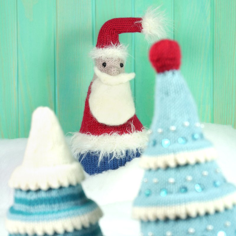 Das PDF beinhaltet eine bebilderte, vollständige Anleitung sowie einen Anhang, in dem die spezielleren Techniken erläutert werden. BITTE BEACHTEN SIE: Die Bäume und der Weihnachtsmann werden in RUNDEN gestrickt, es gibt keine Anleitung für das Stricken in Reihen!