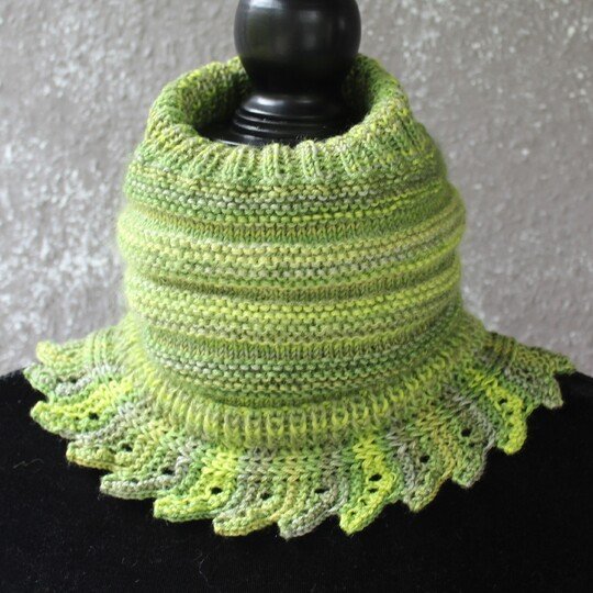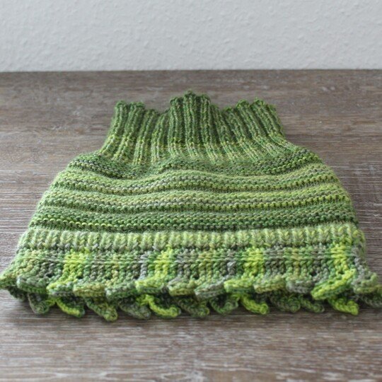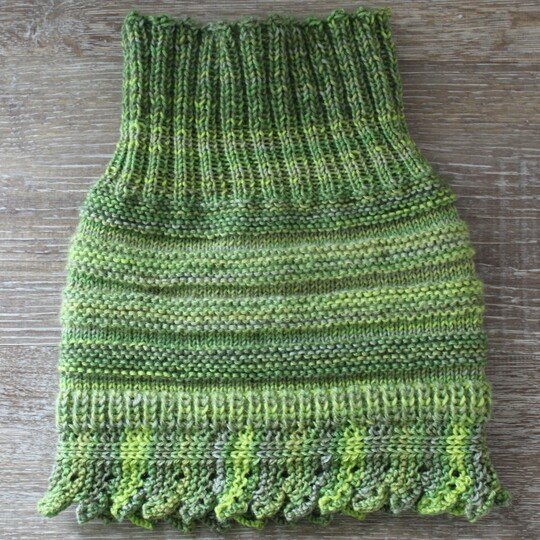 Zunächst wird eine Bordüre in Reihen gestrickt, diese zur Runde geschlossen, aus dem Rand Maschen aufgenommen und in Runden weiter gestrickt.