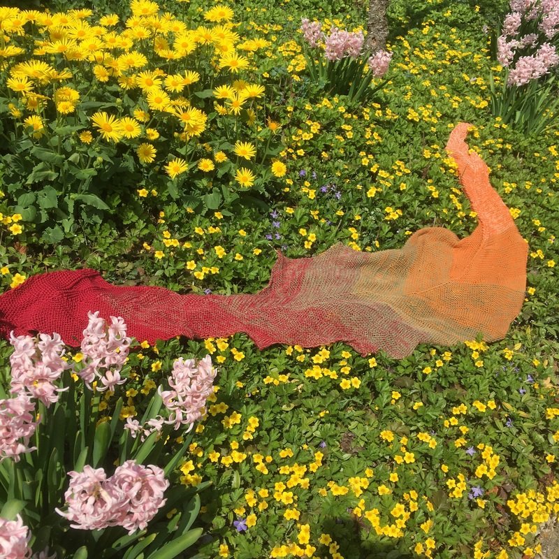 1 Bobbel à 200 g (800 m / 200g); für das abgebildete Beispiel wurde „Bobbel Cotton; Woolly Hugs“ verwendet. Es kann jedes beliebige Farbverlaufsgarn mit ähnlicher Lauflänge verwendet werden.