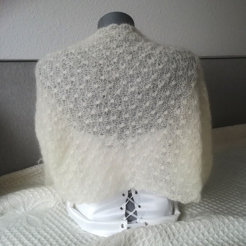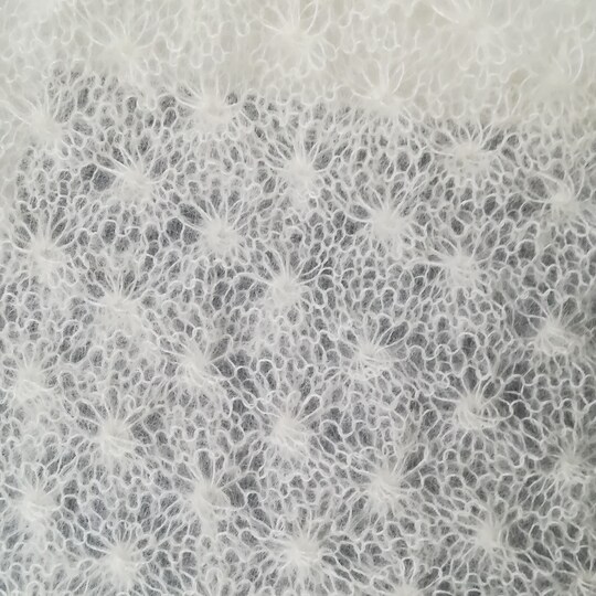 Das verwendete Material – Mohair mit Seide - macht die Stola leicht und zart, sie wiegt ganze 73 g!