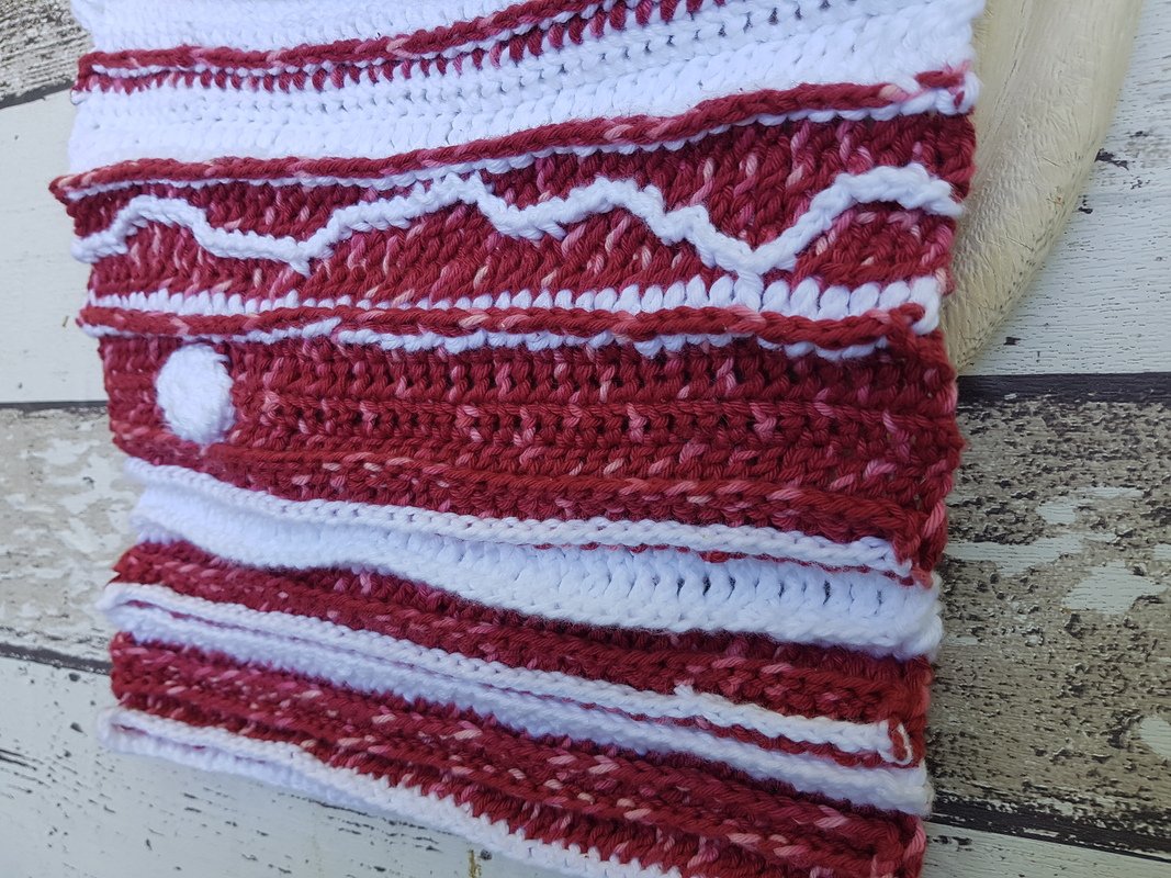 Die Optik kommt besonders durch die selbstgebatikte Wolle zur Geltung.