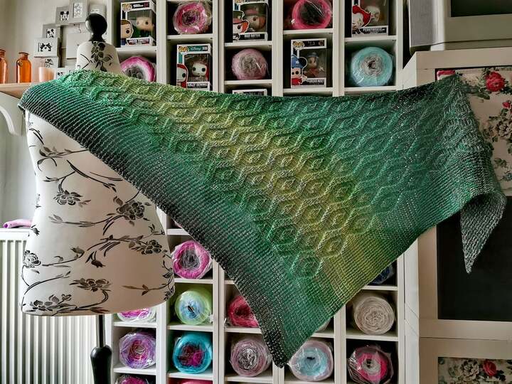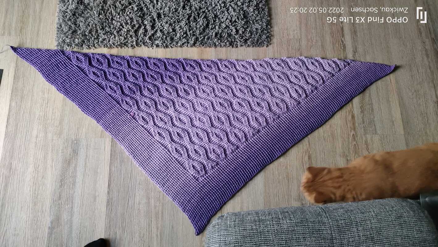 Als ich mit dem Tuch begonnen hatte, war es noch etwas frisch und daher ist das Muster auch dementsprechend eher etwas für die kälteren Tage. Eigentlich wollte ich aus dem Bobbel ein neues Luuranko arbeiten, aber dann habe ich es doch abgeändert und mit einem Rautenmuster gehäkelt. Hier ist ein bisschen Konzentration erforderlich und daher vielleicht eher etwas für schon etwas erfahrenere Häkler/innen.