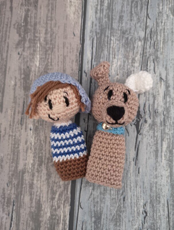 Fingerpuppen mag ich einfach total , sie sind flott aus Baumwollresten zu häkeln und man hat immer ein schnelles und persönliches Mitbringsel.
