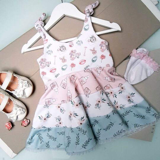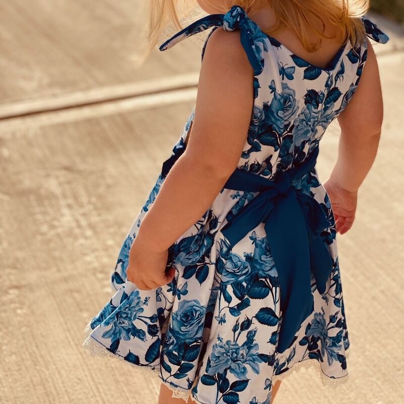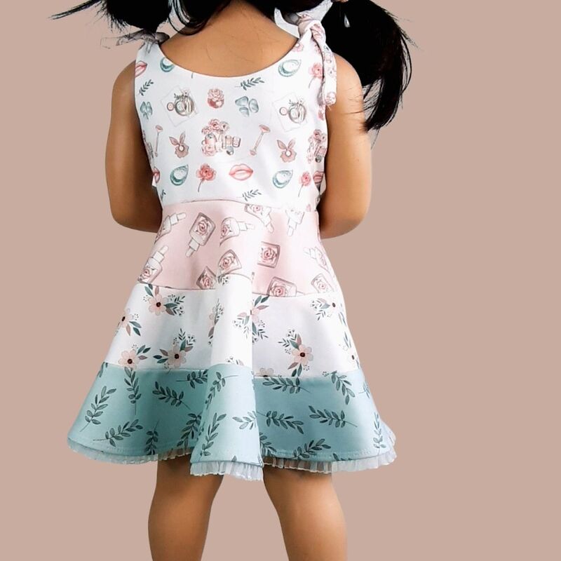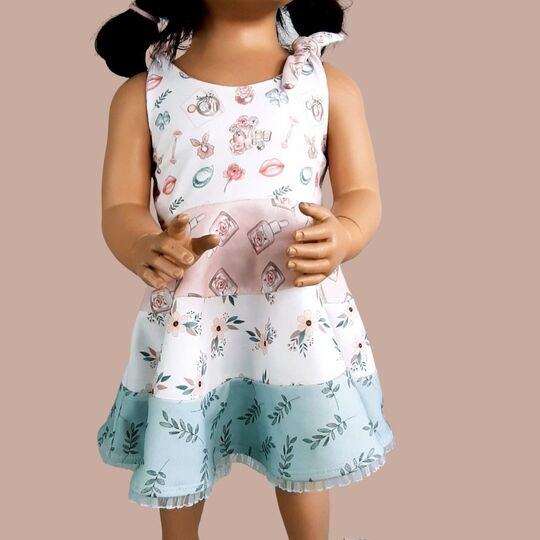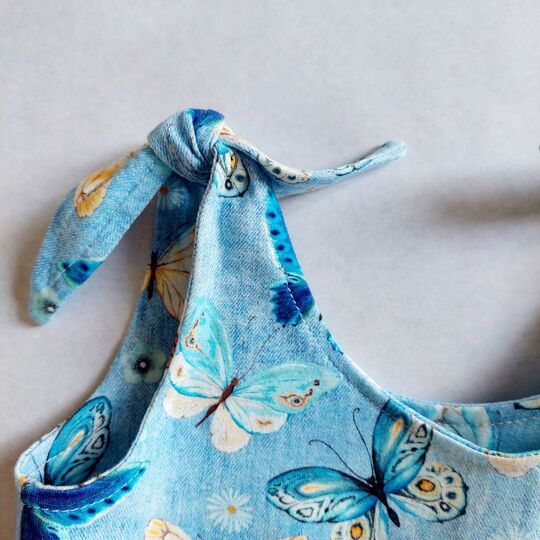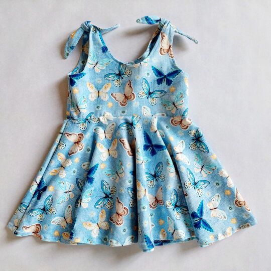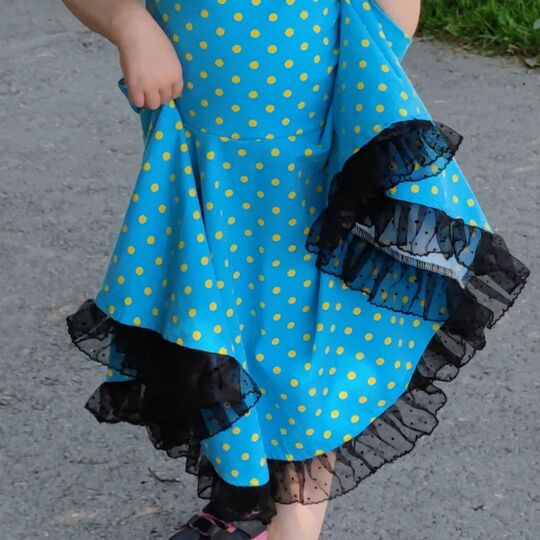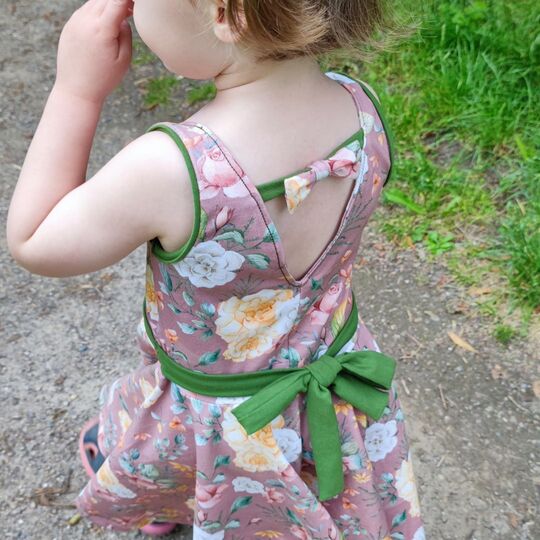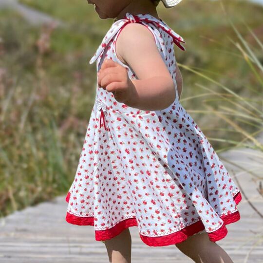 Mit dem Schnittmuster Britta nähst Du ein ärmelloses Sommerkleid mit Tellerrock. In der Nähanleitung werden zwei Verarbeitungsmethoden gezeigt: Einmal sind die Träger zum Binden und das Oberteil wird abgefüttert. Bei der zweiten Variante wird der Ausschnitt mit Schrägband versäubert. Damit kannst Du auch zwischen einem runden Rückenausschnitt oder einem V-Ausschnitt wählen.