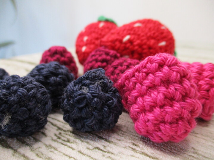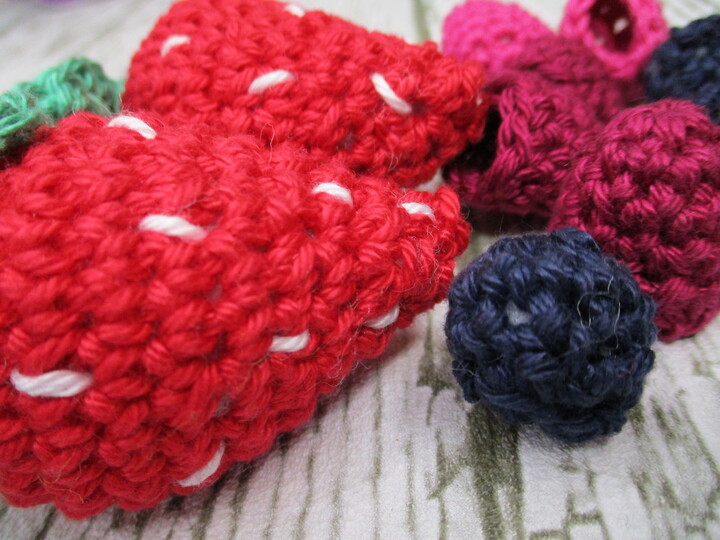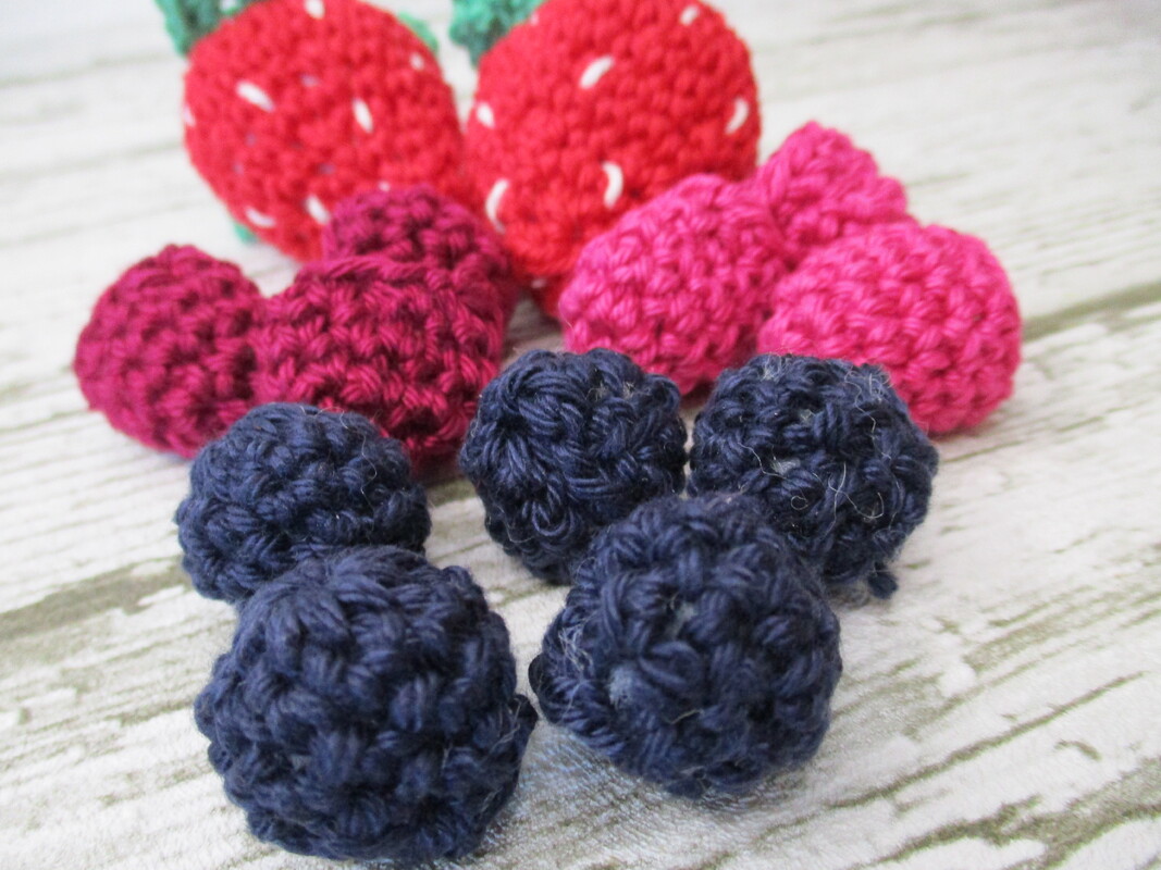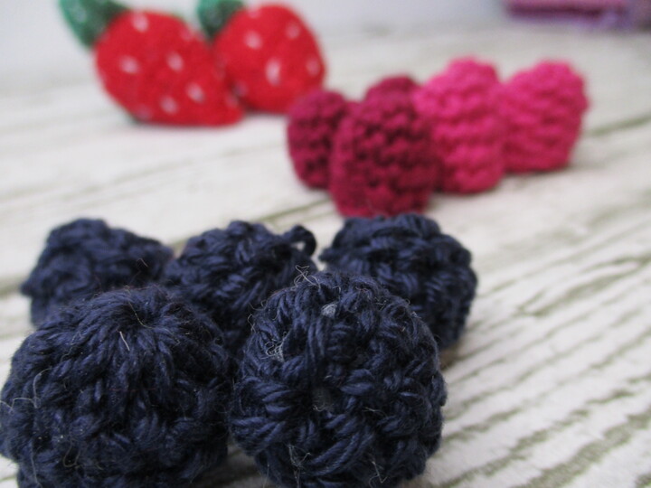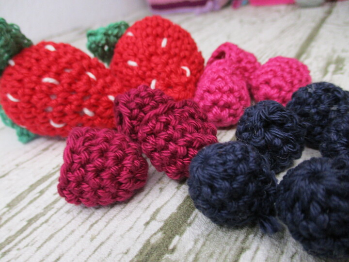 Einfache bebilderte Anleitung zum nach häkeln dieser fruchtigen Beerchen zb für den Kaufladen, Kinderküche oder einfach zur Deko.