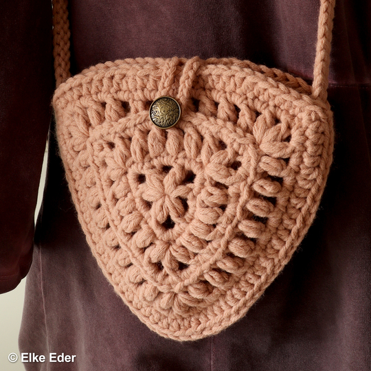 Die Tasche "Triangle" hat genau die richtige Größe um ein paar unverzichtbare Dinge, wie Schlüssel, Brille, Lippenstift, Handy, etc. unterzubringen. Das eingehäkelte Außenfach ist praktisch und bietet Platz für Ausweis, Visitenkarten, Haargummis, Kopfhörer, etc. Das ganze wird mit einem Knopf gesichert.