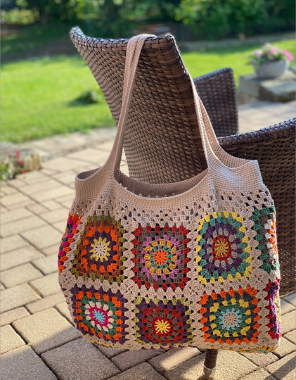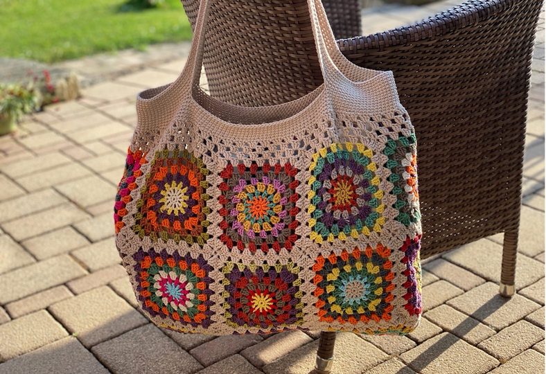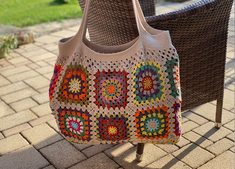 Du erhältst eine einfache Anleitung für einen großen Shopper / Strandtasche aus Grannys
