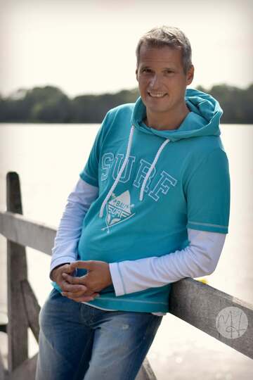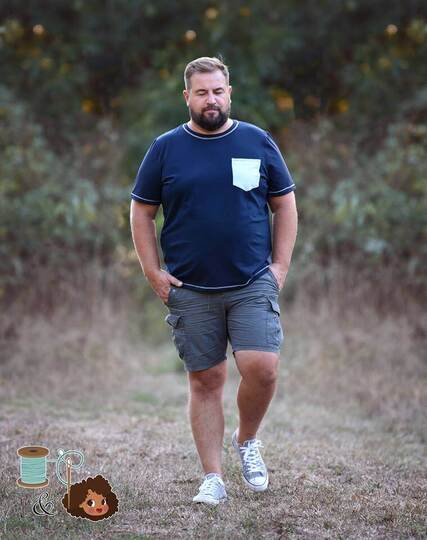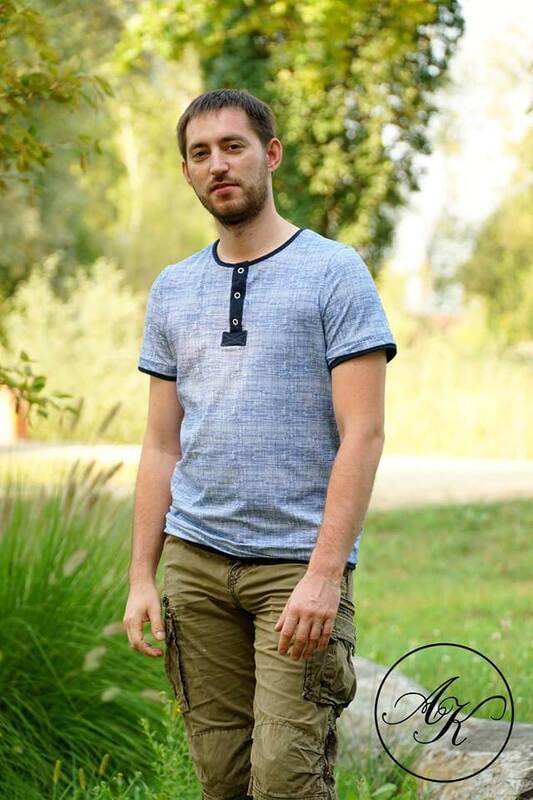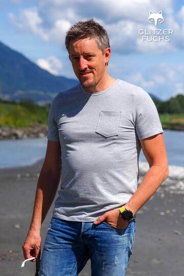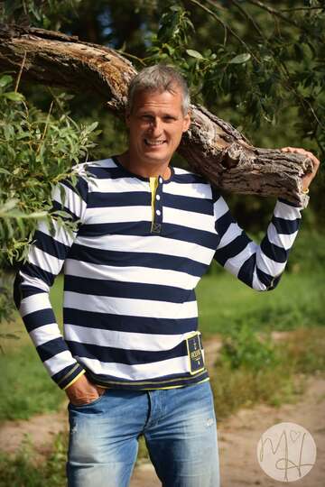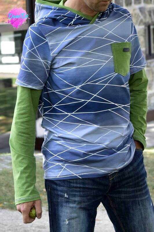 Theo ist eher etwas schmaler geschnitten. Das Schnittmuster und die Nähanleitung enthalten folgende Varianten: lange Ärmel, kurze Ärmel oder Ärmel im Lagenlook, Kapuze, Knopfleiste, Ellenbogenpatch, Brusttasche, Fake-Innenshirt, Rückenbeleg, Saum im Lagenlook, Abschluss mit Retrostripes an Kapuze und Knopfleiste. So kannst du aus einem Schnitt immer wieder ein neues Shirt nähen – egal ob Langarmshirt, Longsleeve oder T-Shirt.
