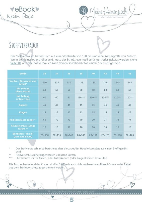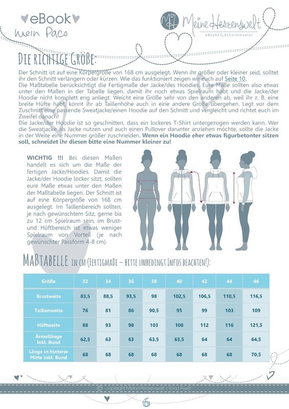 Mein Paco kann in den Größen 32 - 58 genäht werden.
