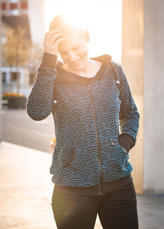 Für die Sweatjacke oder den Hoodie eignen sich etwas dickere, dehnbare Stoffe wie z.B. Sweat (angeraut oder unangeraut), French Terry, Alpenfleece und ähnliche Stoffe.