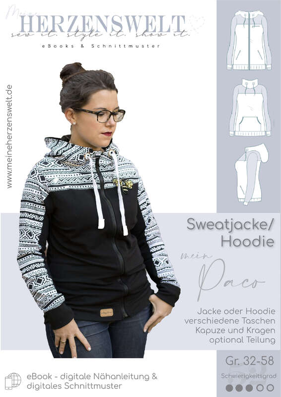 Sweatjacke/Hoodie Damen – E-Book Schnittmuster Gr. 32-58 – Paco