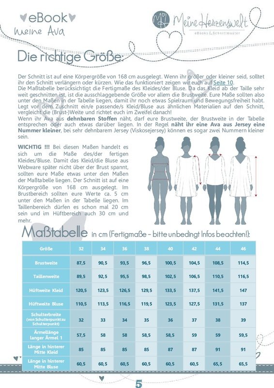 Meine Ava kannst du in den Größen 32 - 54 nähen.