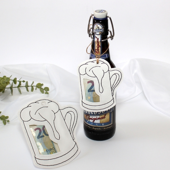 Verschenke Geld oder Schokolade oder Grüße, hübsch verpackt in diesem Bierkrug mit Sichtfenster.