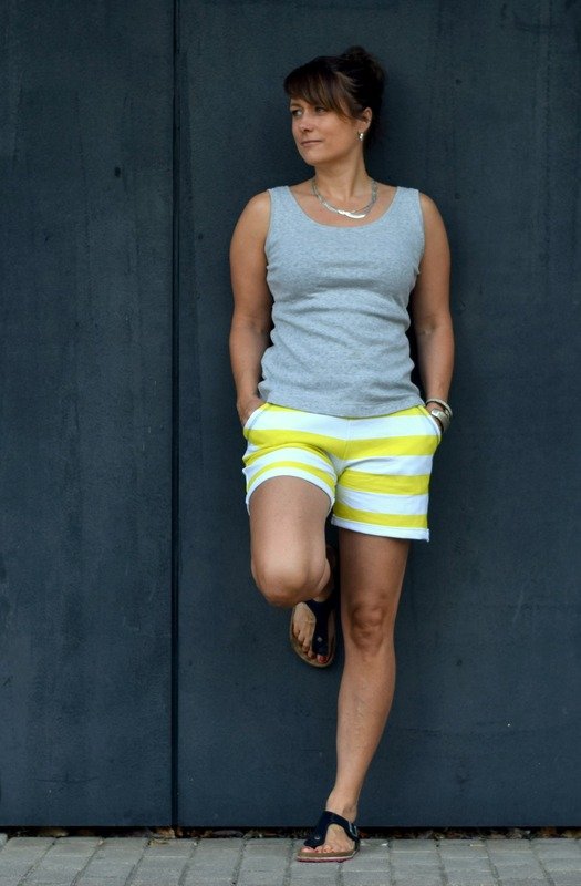 Lucy ist ein schnell und leicht genähtes Tanktop mit Bündchenabschlüssen an Ärmeln und Ausschnitt. Je nachdem, aus welchem Stoff du Lucy nähst und wie sie kombiniert wird, ist sie schick oder casual/sportlich. Lucy ist auf leichte, dehnbare Stoffe ausgelegt.