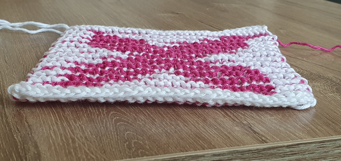 Dabei habe ich 33 Maschen aufgenommen und 23 Hin- und Rückreihen gestrickt.