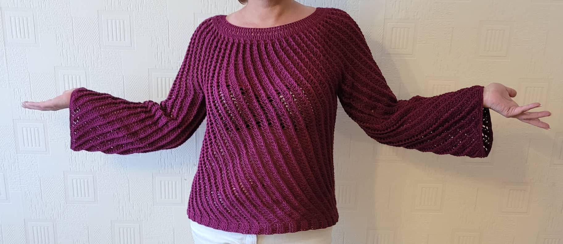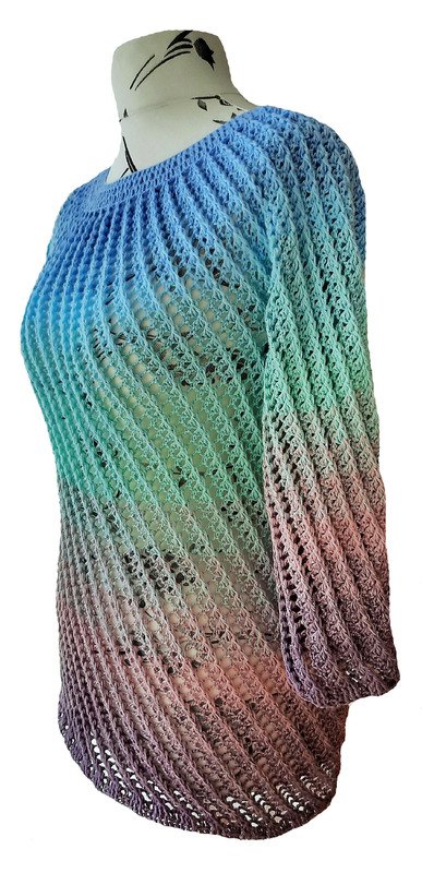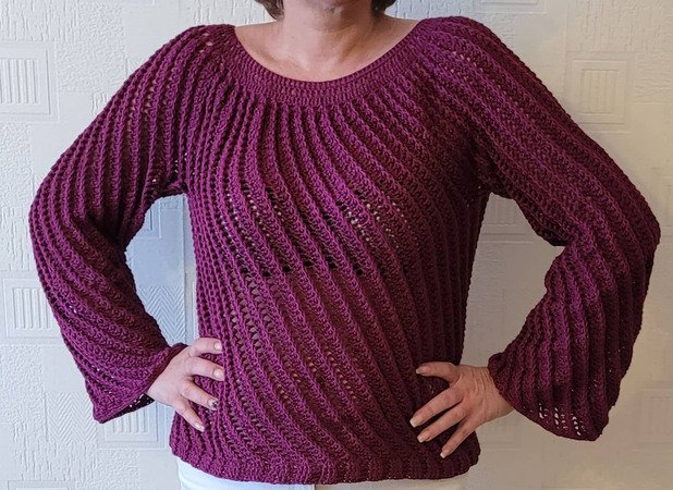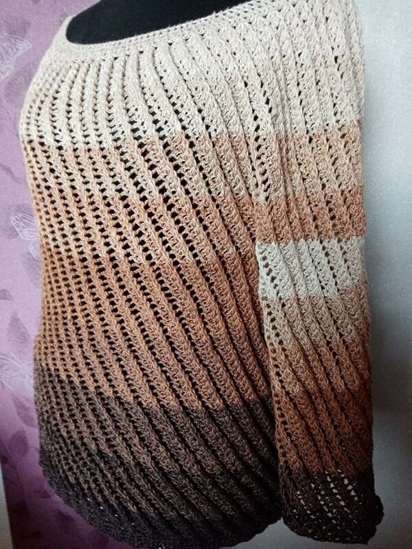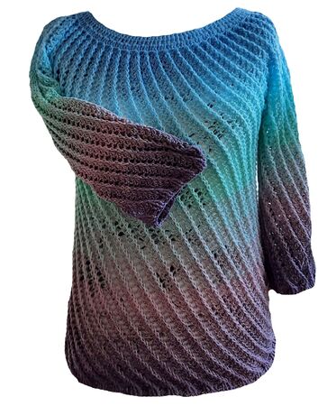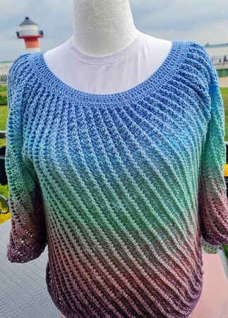 Vortice wird von oben nach unten in Runden gehäkelt. Es wird mit einer Rundpasse begonnen.