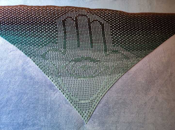 Die Anleitung ist auf 4 Seiten in teilweise Schrift (Erklärung Filethäkeln), der Anfang des Tuches in Pc-Häkelschrift und Zählraster geschrieben.