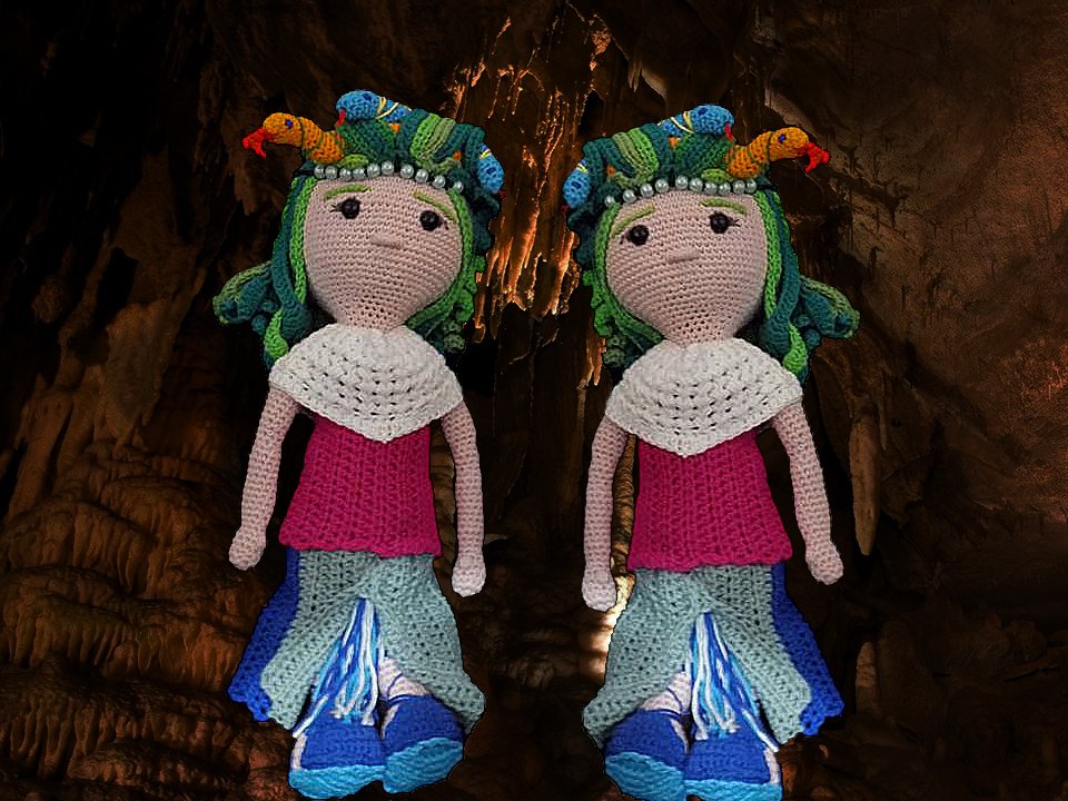 Diese Puppe wird etwa 50 cm groß. (Bei Verwendung gleicher Wolle, Abhängig auch von Deiner Häkelfestigkeit)