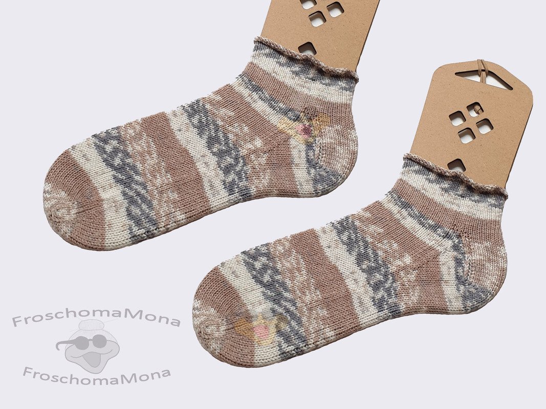 Gestrickt habe ich die Socken in Größe 38/39 mit 60 Maschen.