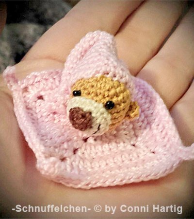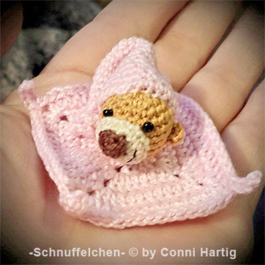Dieses süße Mini-Schnuffeltuch ist liebevoll entworfen von Conni Hartig und ihr bekommt es als freie Anleitung. Man kann es den Häkelpuppen in die Arme drücken oder man kann es aus der Jeans raushängen lassen :)
