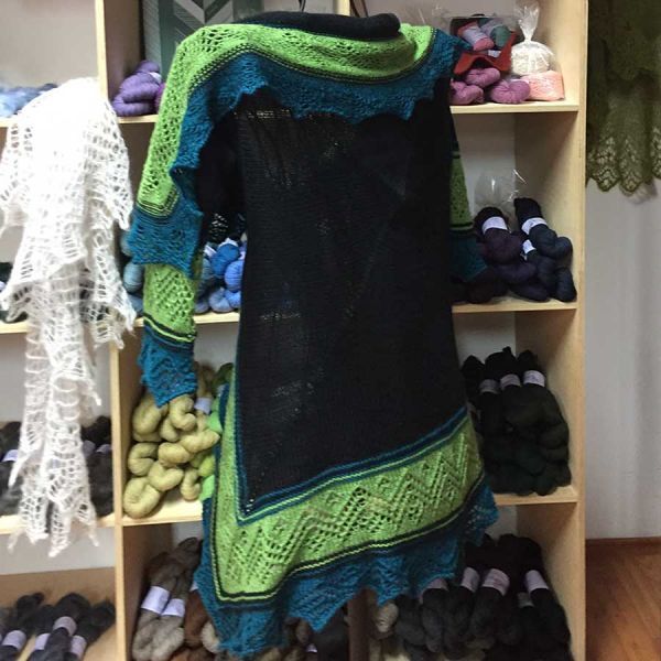 Diese Jacke ist durch die extravagante Form ein besonderer Eyecatcher. Das Besondere an diesem Modell: Weite und Länge verhalten sich proportional. Bei größeren Größen, ab ca. Konfektionsgröße 50, wird die Jacke eher ein Mantel.