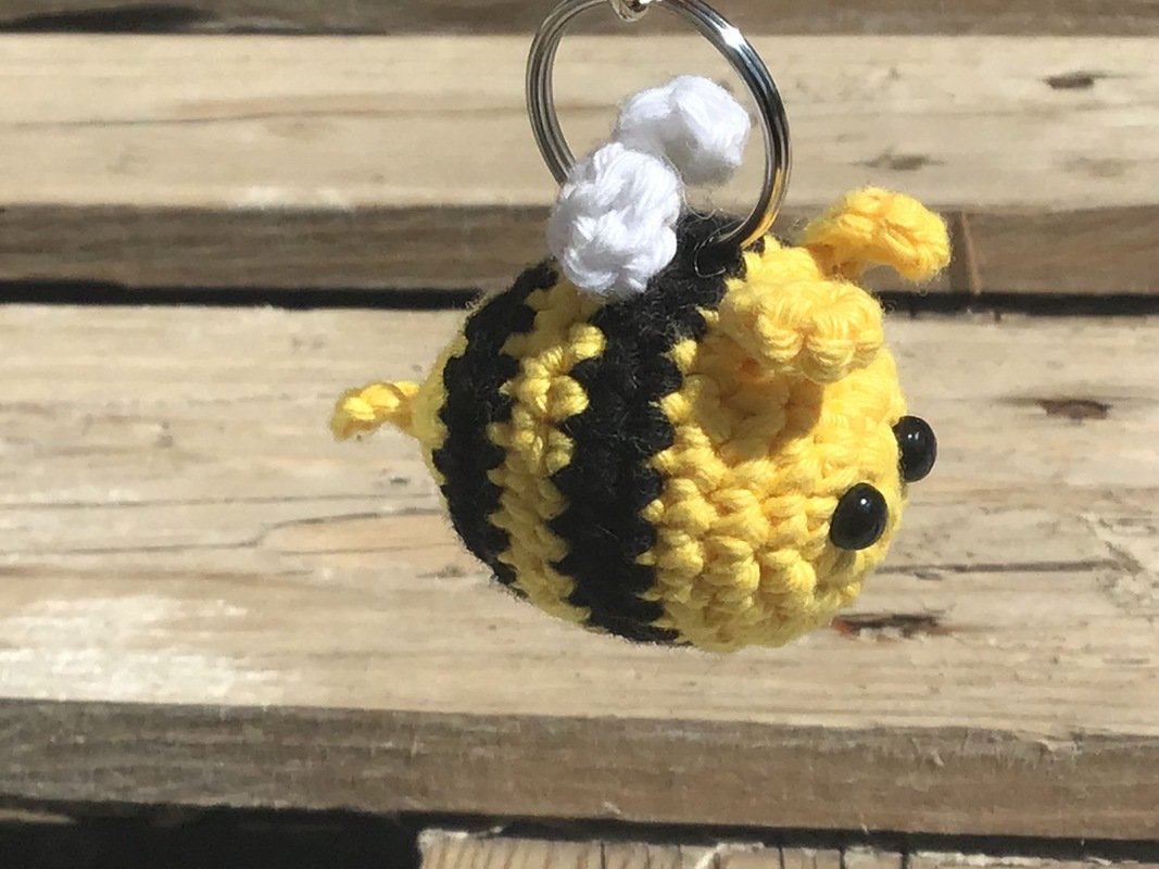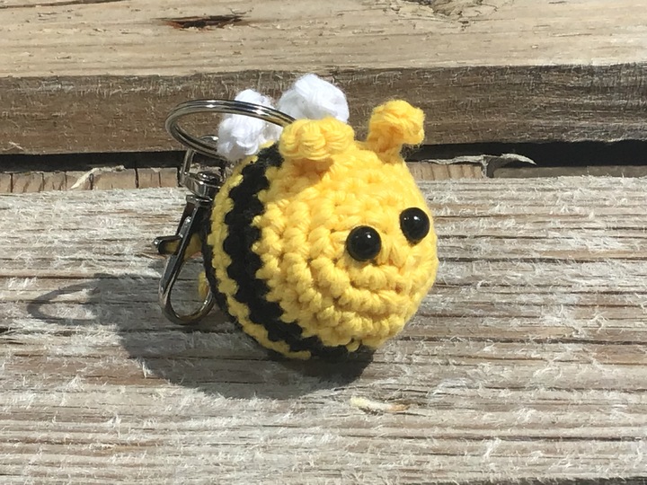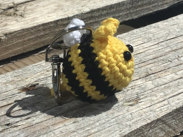 Bei der Verwendung von dickerem oder dünnerem Garn vergrößert bzw. verkleinert sich die Biene.