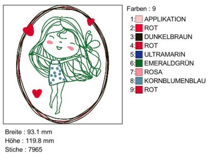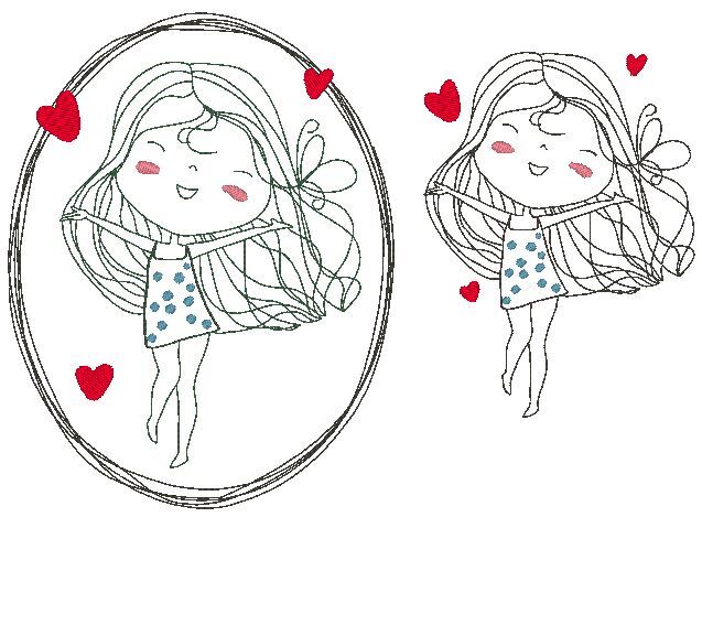 Stickdatei cute Girl ♥ ein allerliebstes Redwork Mädchen in 7 Größen