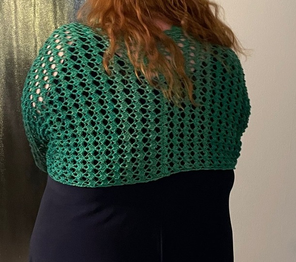 Dieser Bolero ist in jeder Größe (ich selber habe 56/58) nachgearbeitet werden und mit jedem Garn mit passender NS. Es muss hier gemessen werden! Es sind keine Größenangaben dabei, so könnt ihr euch den Bambolero auf den Leib häkeln und er sitzt nachher perfekt.