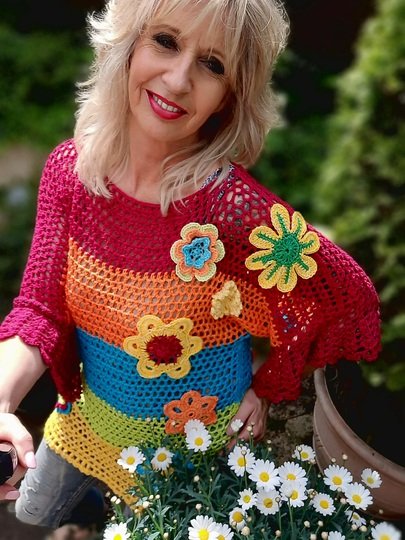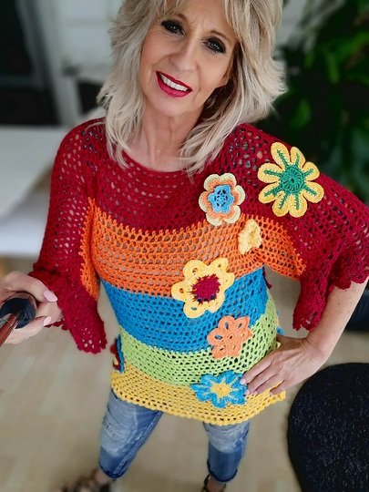 Der Hippy Jippy Pulli kann aber auch in allen anderen Größen gehäkelt werden.