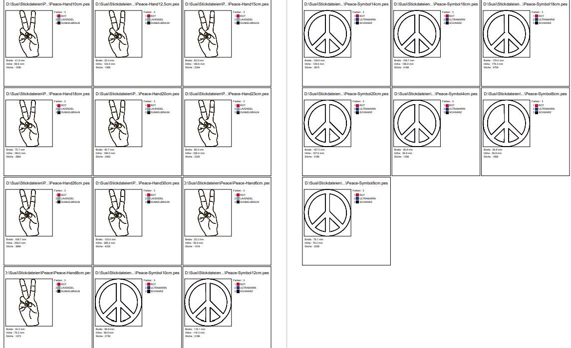 Stickdatei Peace Hand und Symbol