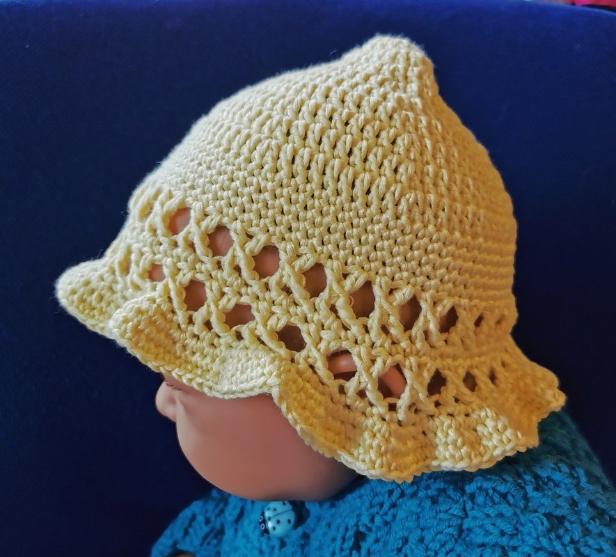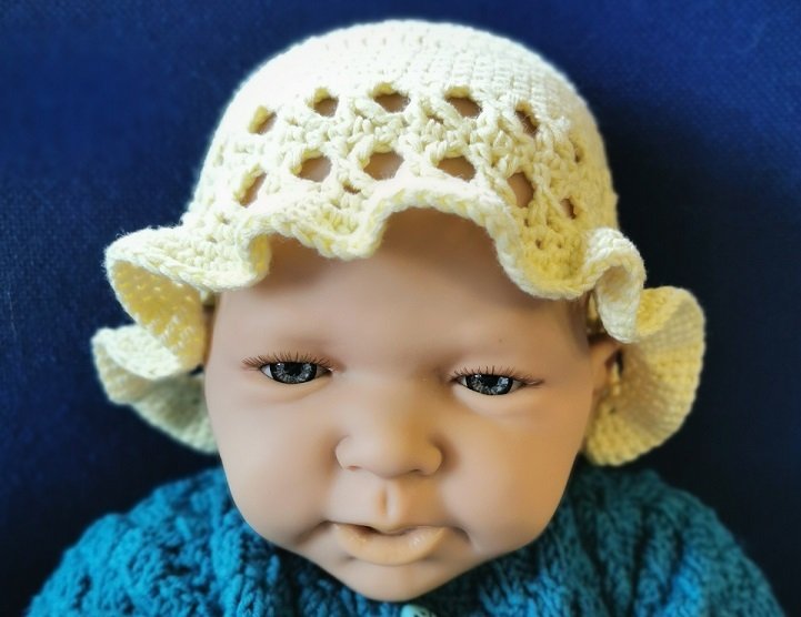 Dieses Baby-Sommerhütchen ist aus weichem Baumwoll-Soja-Garn schnell gehäkelt. Die Größe lässt sich leicht anpassen.