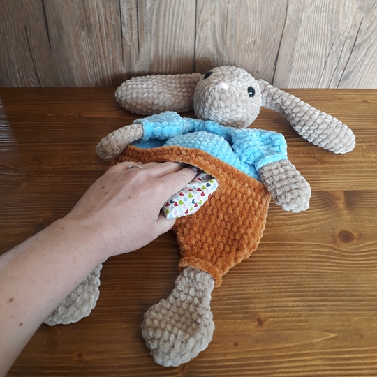 Hasis Bauch hat eine Öffnung, um ein Wärmekissen oder ähnliches hinein zu legen :) :) :).