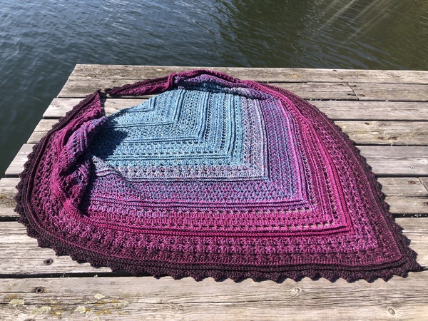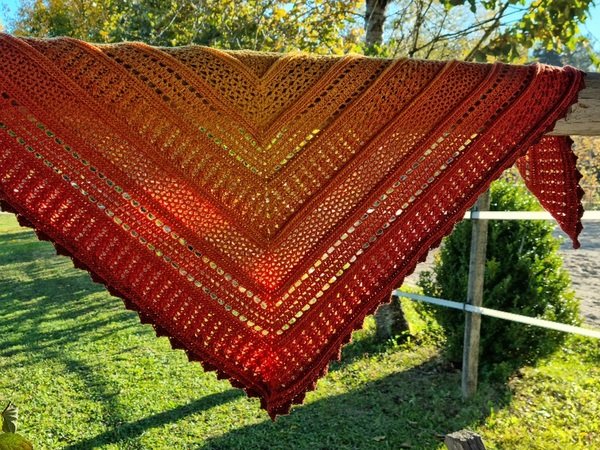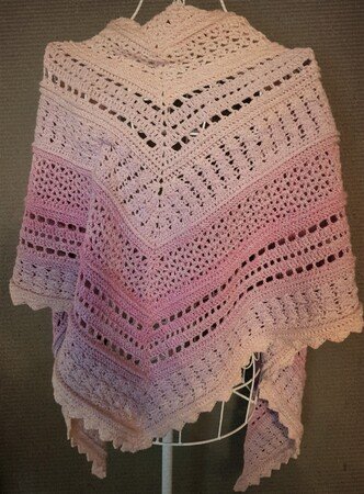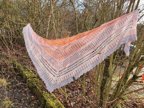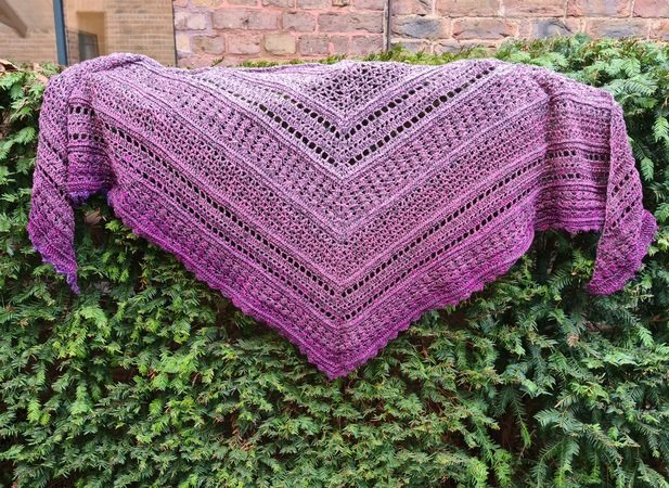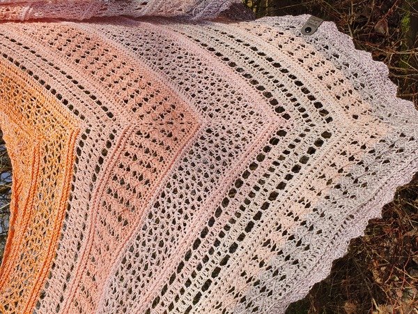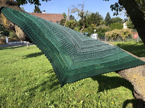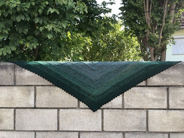 Ich bin erst bei der Hälfte, aber es macht sehr viel Spaß, dieses Tuch zu häkeln. Ich hab lediglich die Randmaschen angepasst, damit es nicht zu labberig wird. Bin gespannt auf den Rest und auch, was die demnächst beschenkte dazu sagt. Die HS ist übrigens top. Wird nicht mein letztes Tuch von hier sein.