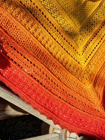 • Dieses Tuch macht schon beim Häkeln viel Freude!!!! Ich liebe abwechslungsreiche Muster, da wird es bis zum "bitteren Ende" nicht langweilig!!!!!!!!