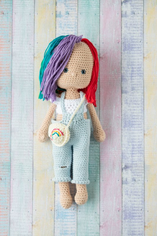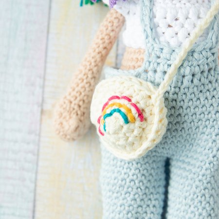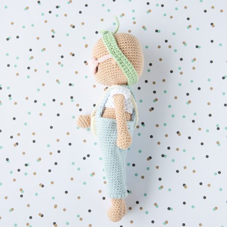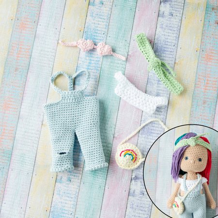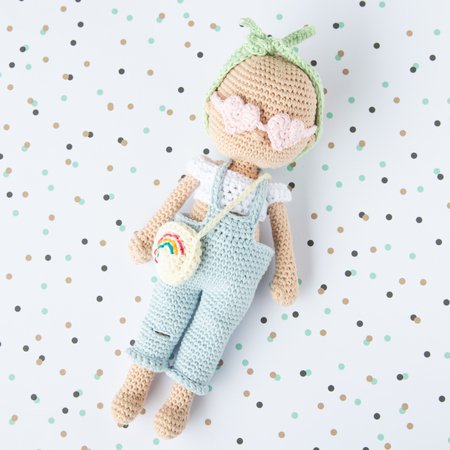 Der Sommer klopft an die Stadt, wie wäre es mit einer lässigen Latzhose mit Loch am Knie und einem süßen Top? Noch schnell die Tasche umhängen. Schuhe braucht die kleine Puppe nicht, denn sie hängt die Füße in den Donaukanal oder turnt durch die grünen Parks.