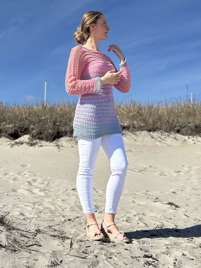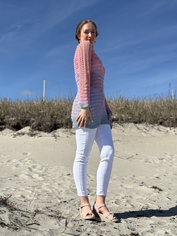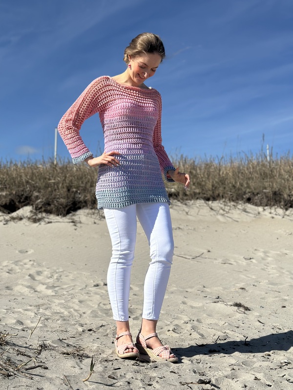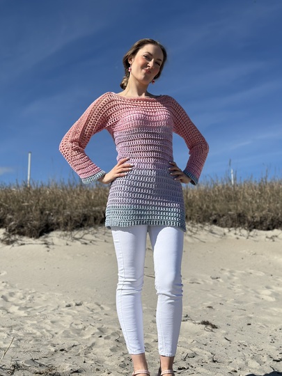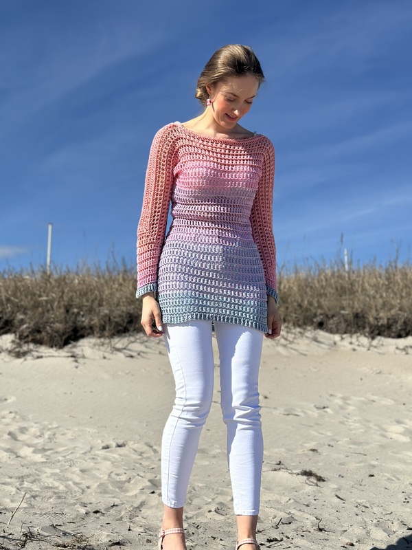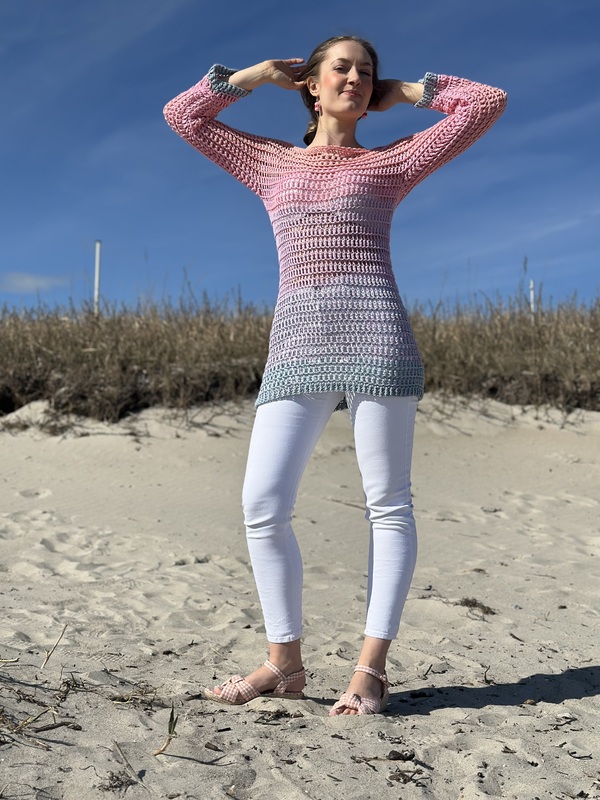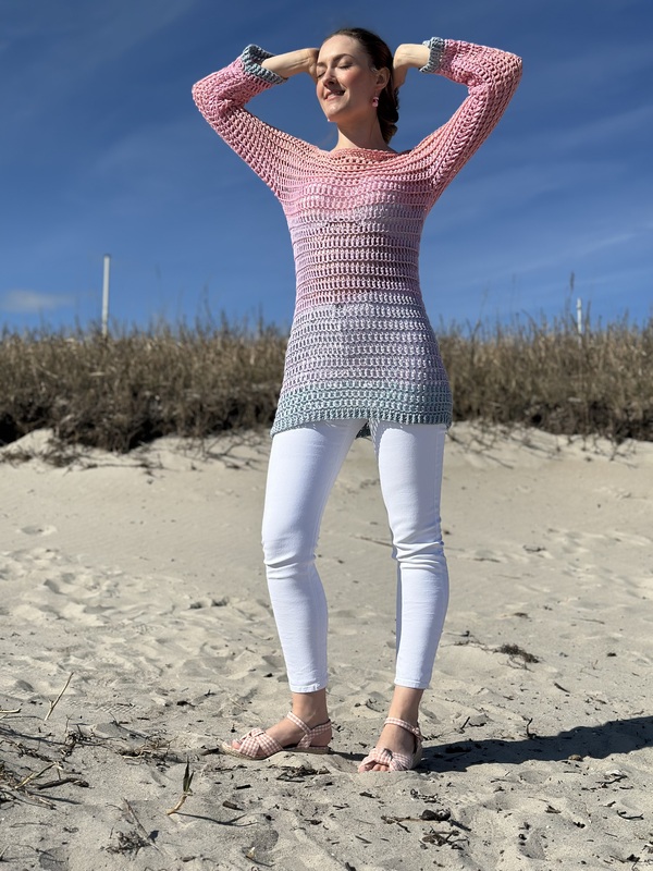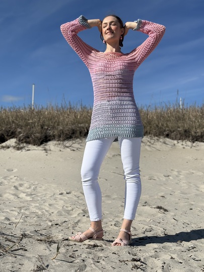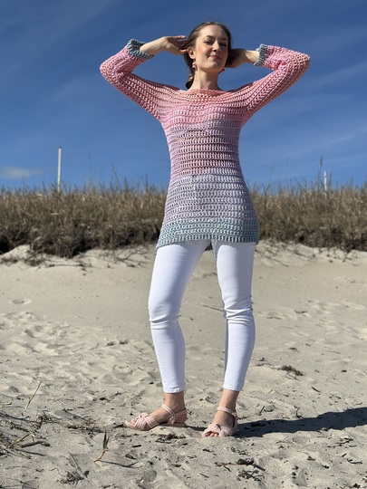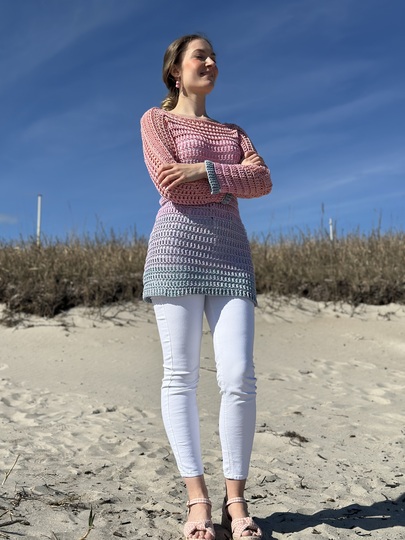 Hier bekommst Du eine Anleitung für den tollen luftig leichten, einzigartigen und wunderschönen 1-Bobbel-Sommerregen-Häkelpulli, der Sommer-Herzen höher schlagen lässt. Wie der Name schon sagt, benötigst Du nur EINEN Bobbel, denn der Häkelpulli wird in einem Stück gehäkelt. Hierfür benötigst Du KEINE extra Bobbel für die Ärmel. Dieser Häkelpulli ist ein echter Hingucker und kann auch als Kleid gearbeitet werden. Du kannst Dein Werk im Alltag oder eben auch zu besonderen Anlässen tragen. Der schöne Sommerregen-Pulli (oder Kleid) ist an jede Größe anpassbar und für nahezu jedes Garn geeignet. Je nach Garnauswahl, kann man den Pulli zu jeder Jahreszeit tragen. Besonders gut eignen sich hier Farbverlaufsgarne/ Bobbel, weil sie mit einem Rutsch von der Häkelnadel hüpfen. Viel Spaß beim Nachmachen und gutes Gelingen.