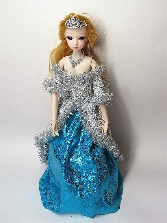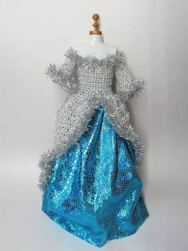 Das Kleid ist für Ankleidepuppen von 29 - 30 cm Größe konzipiert.