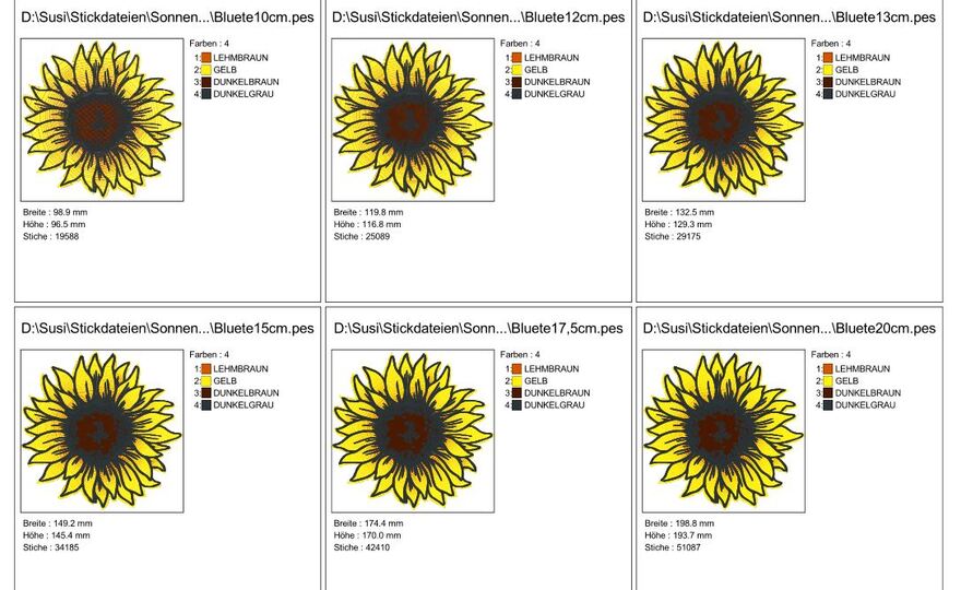 Sonnenblumenblüte in 6cm 8cm 10cm 12cm 13cm 17,5cm und 20cm