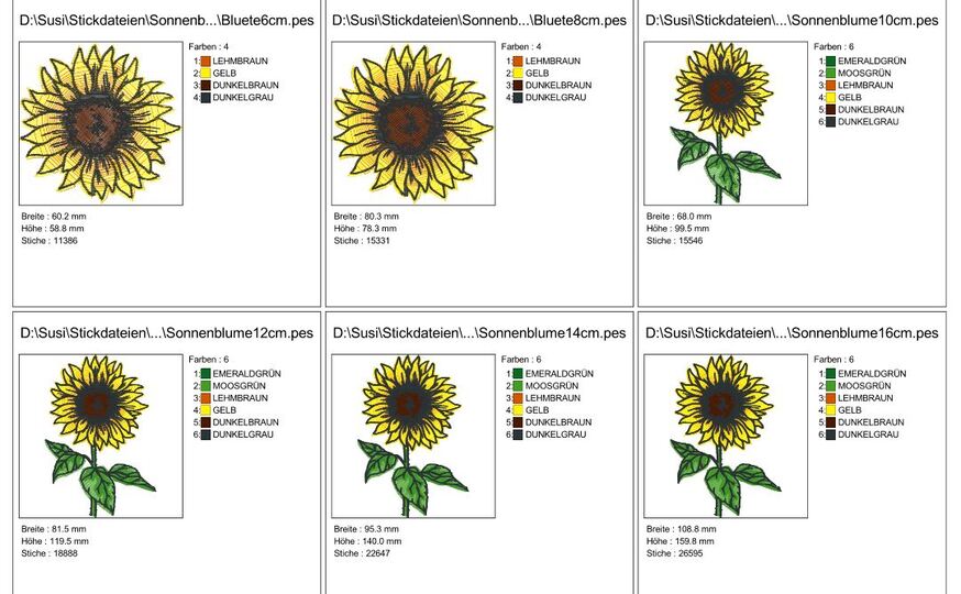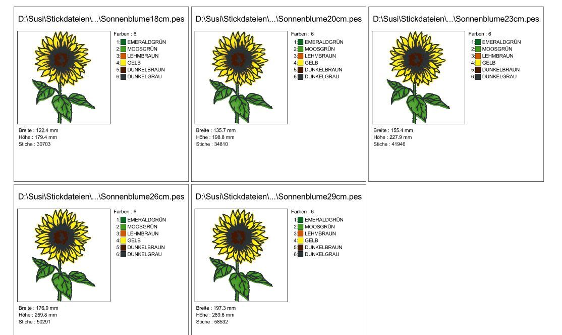 und die Sonnenblume mit Stiel in 10cm 12cm 14cm 16cm 18cm 20cm 23cm 26cm und 29cm