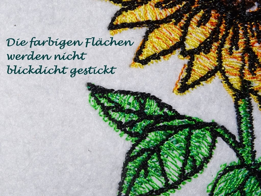 Die farbigen Flächen werden nicht blickdicht gestickt.