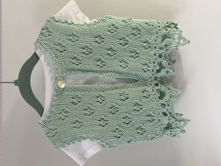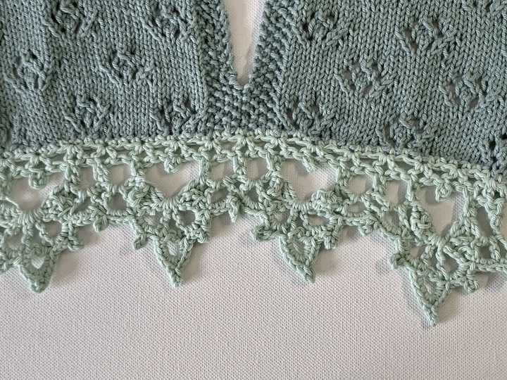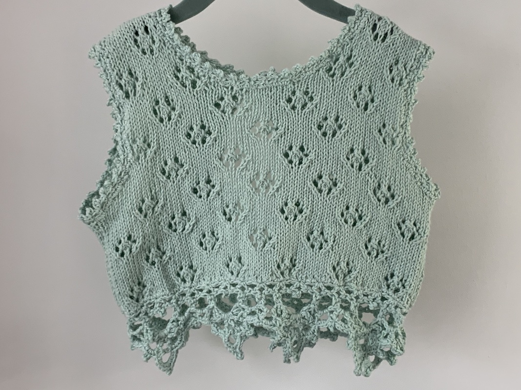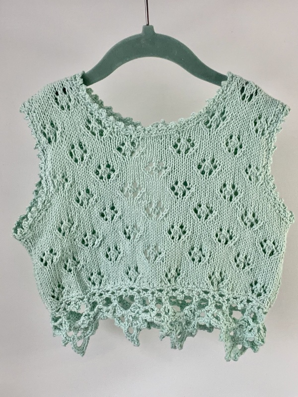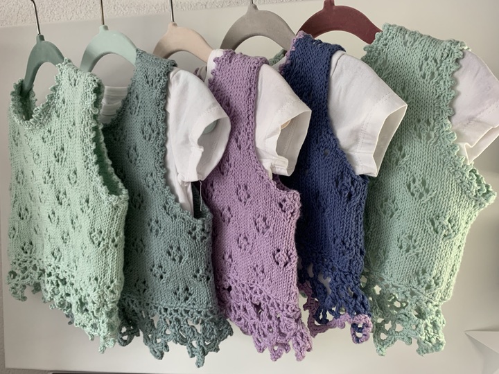 "Lollypop" - ein gestricktes Shirt mit Häkelborte für Girls. Das leichte Sommer-Top hat im Rücken eine offene Knopfleiste und als schönes Detail eine filigrane Häkelborte.