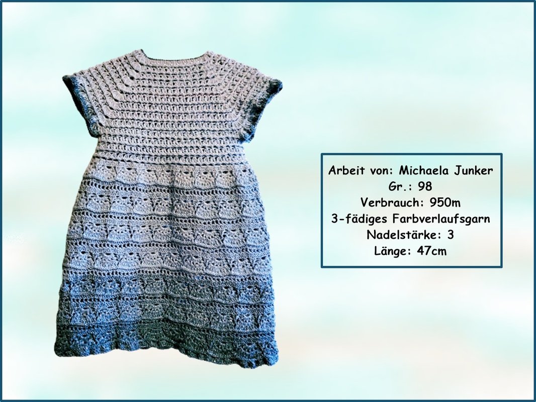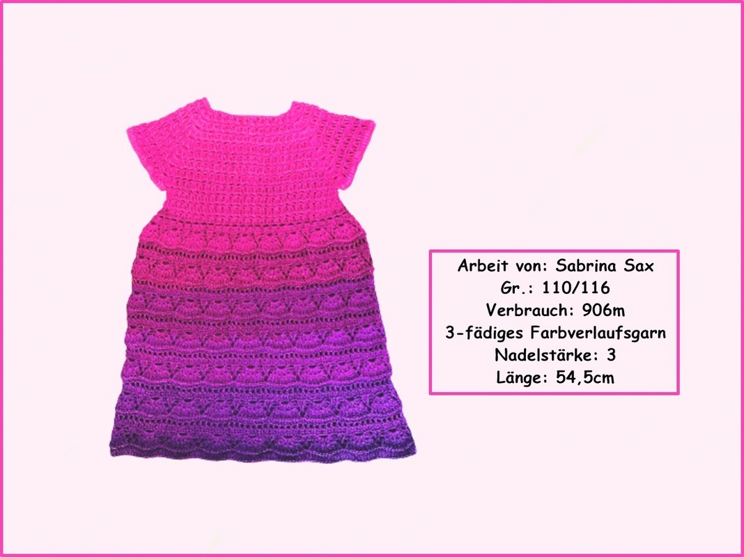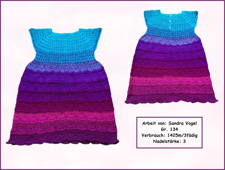 Ein wunderschönes Kleid für alle kleinen und großen Damen. Das Kleid wird an einem Stück von oben nach unten gearbeitet (Raglan von oben) und ist somit perfekt geeignet für Farbverlaufsgarne. Im Rücken ist eine Knopfleiste eingearbeitet. Du kannst es ganz individuell in der Weite, Länge und Größe anpassen.