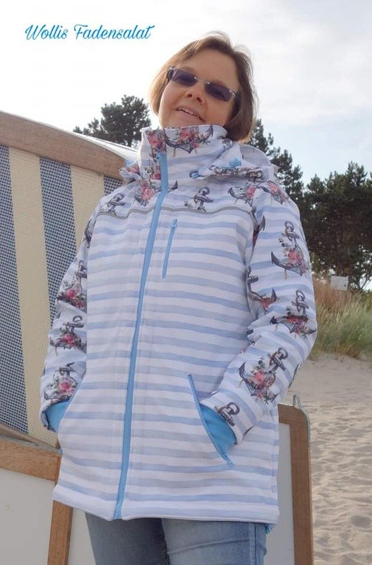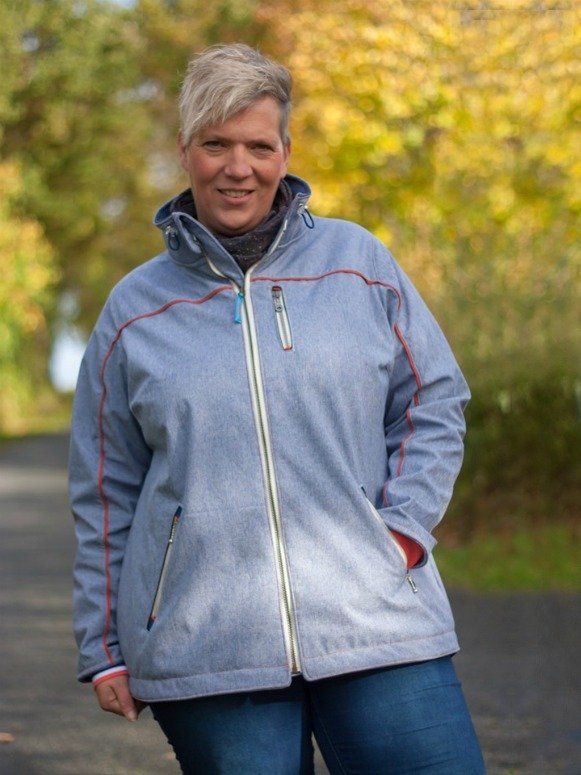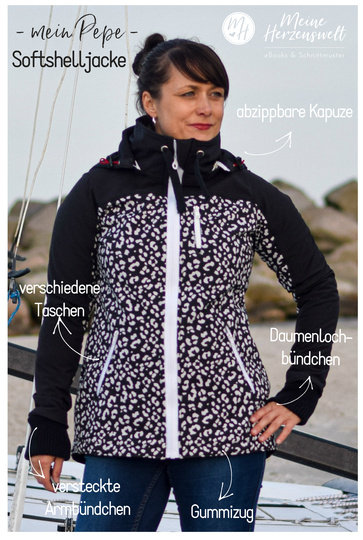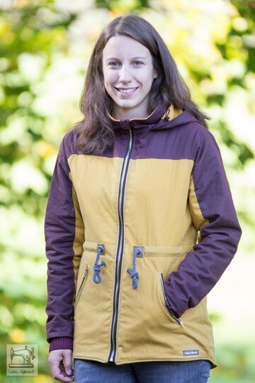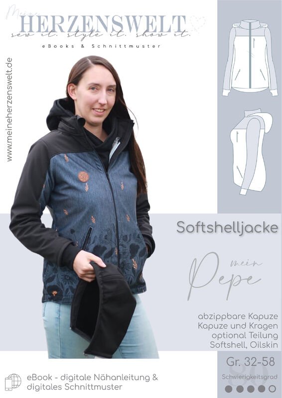 Mit dem Schnittmuster „mein Pepe“ kannst du eine praktische Softshelljacke nähen. Durch die Teilung im oberen Brust- und Rücken- sowie im Armbereich hast du die Möglichkeit Stoffe miteinander zu kombinieren, gerade Uni-Stoffe kommen hier super zur Geltung.