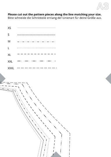 Die Größen XS-XXXL sind als Schnittmuster für das Oberteil enthalten.