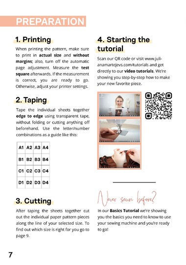 Wenn du dein Schnittmuster heruntergeladen, zusammengeklebt und die Materialien beisammen hast, freue dich auf den spaßigen Produktions-Prozess, der jetzt folgt! Falls du noch nie genäht hast, schau dir als erstes unser Nähmaschinen Grundlagen Video-Tutorial auf unserem YouTube-Kanal an. In wenigen Minuten erfährst du alle Basics, die du für jedes JULIANA MARTEJEVS Ready-to-Sew Produkt benötigst. Dann klick einfach auf die zu deinem Produkt passende Video-Anleitung und los geht’s!